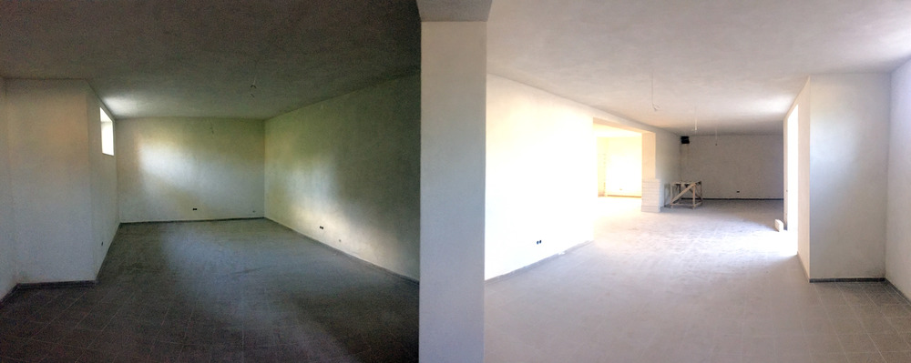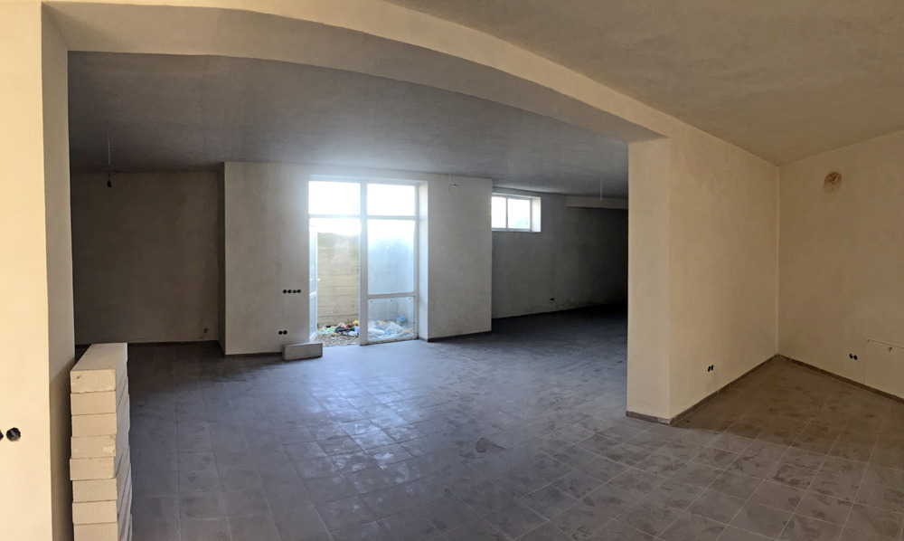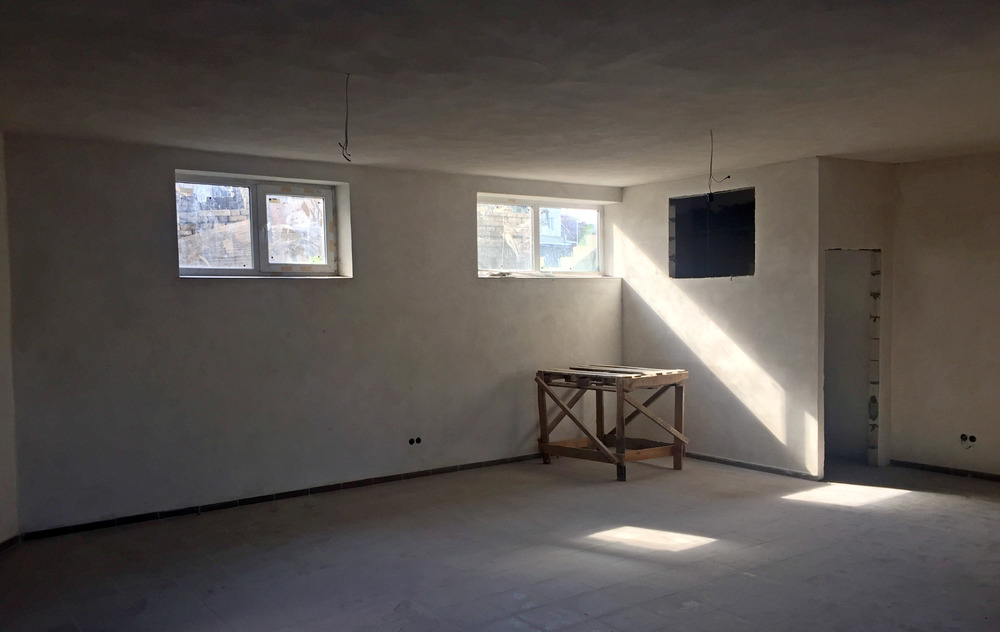 Всередині зроблена підлога з підігрівом, стіни поштукатурені.