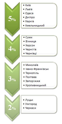 Найвищу винагороду в розмірі 5% комісійних за свою роботу можуть отримати ріелтори таких міст як Київ, Львів, Одеса, Дніпро, Харків. Великі і розвинуті культурні і промислові центри України.