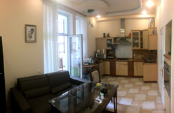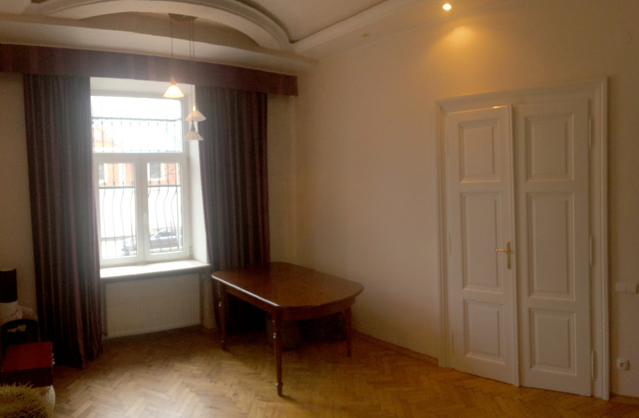 Квартира розташована на першому поверсі в будинку класу 'австрійський люкс'. Вікна виходять на тихі затишні дворики. Є великий балкон з видом на тихенький внутрішній дворик. Велика простора кухня та камін в кімнаті.